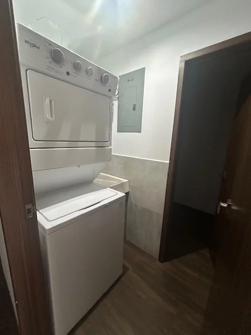 Area de lavanderia con lavadora-secadora. Cuarto de empleada con baño.