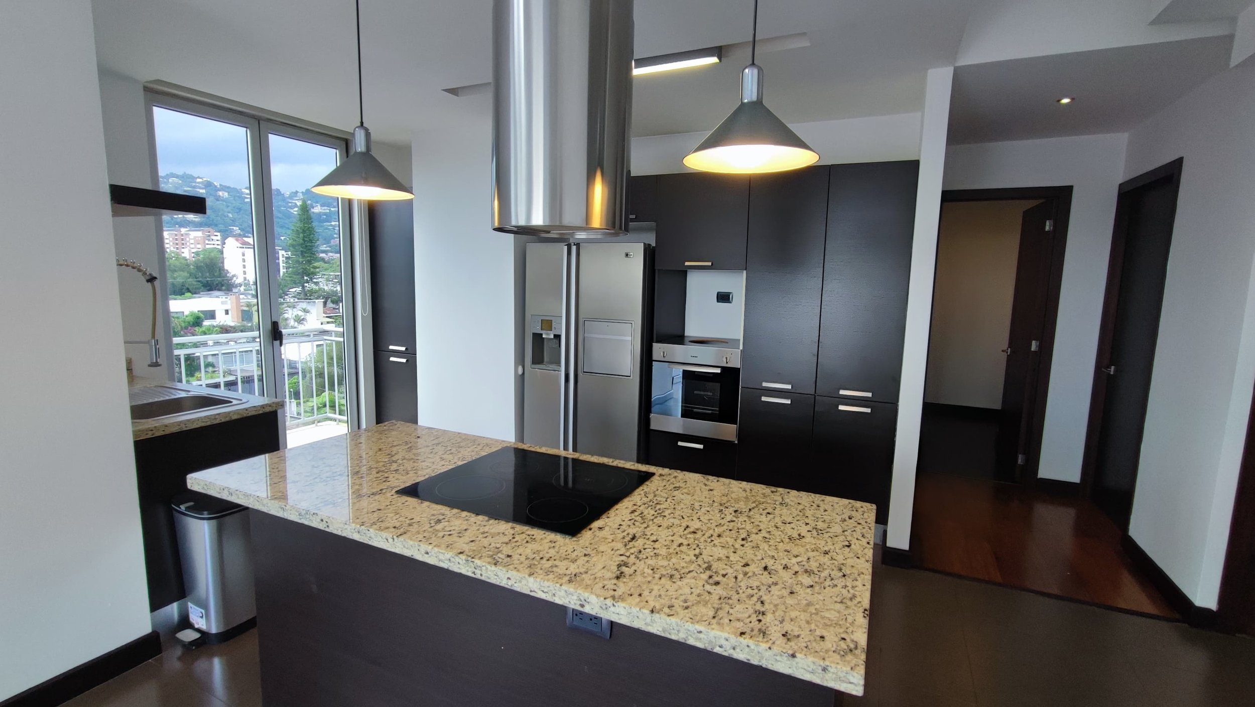 Amplia sala-comedor, cocina abierta equipada, area de lavanderia.