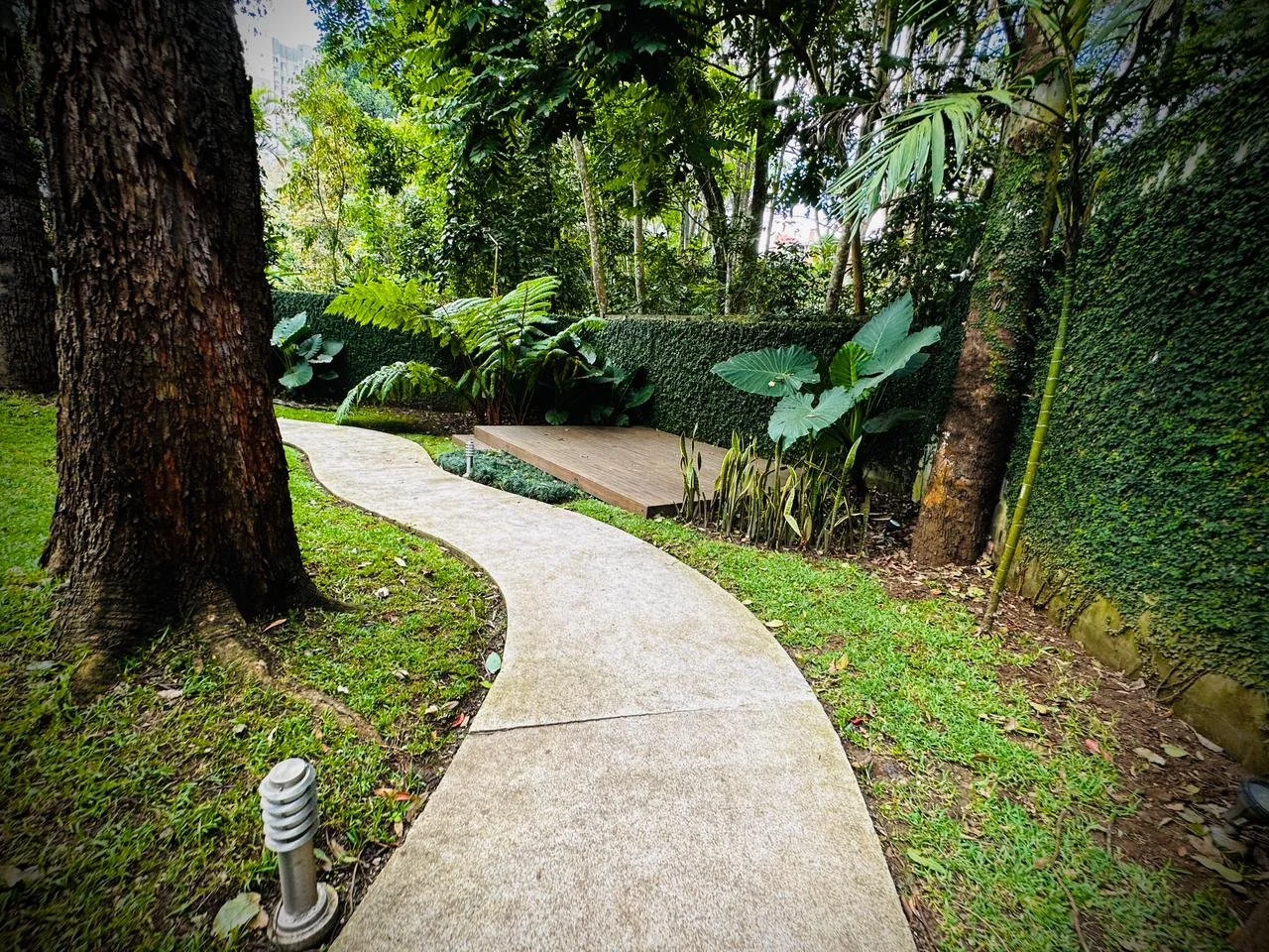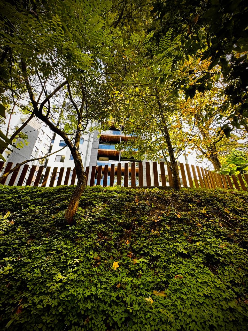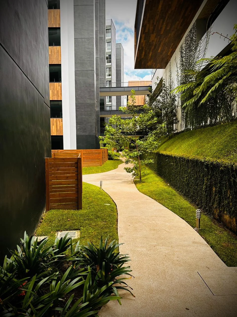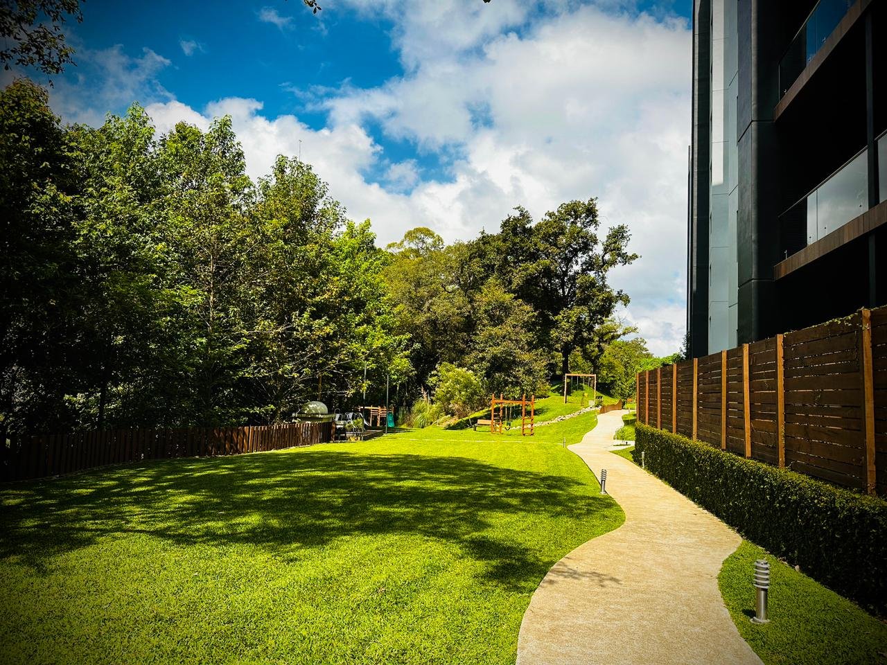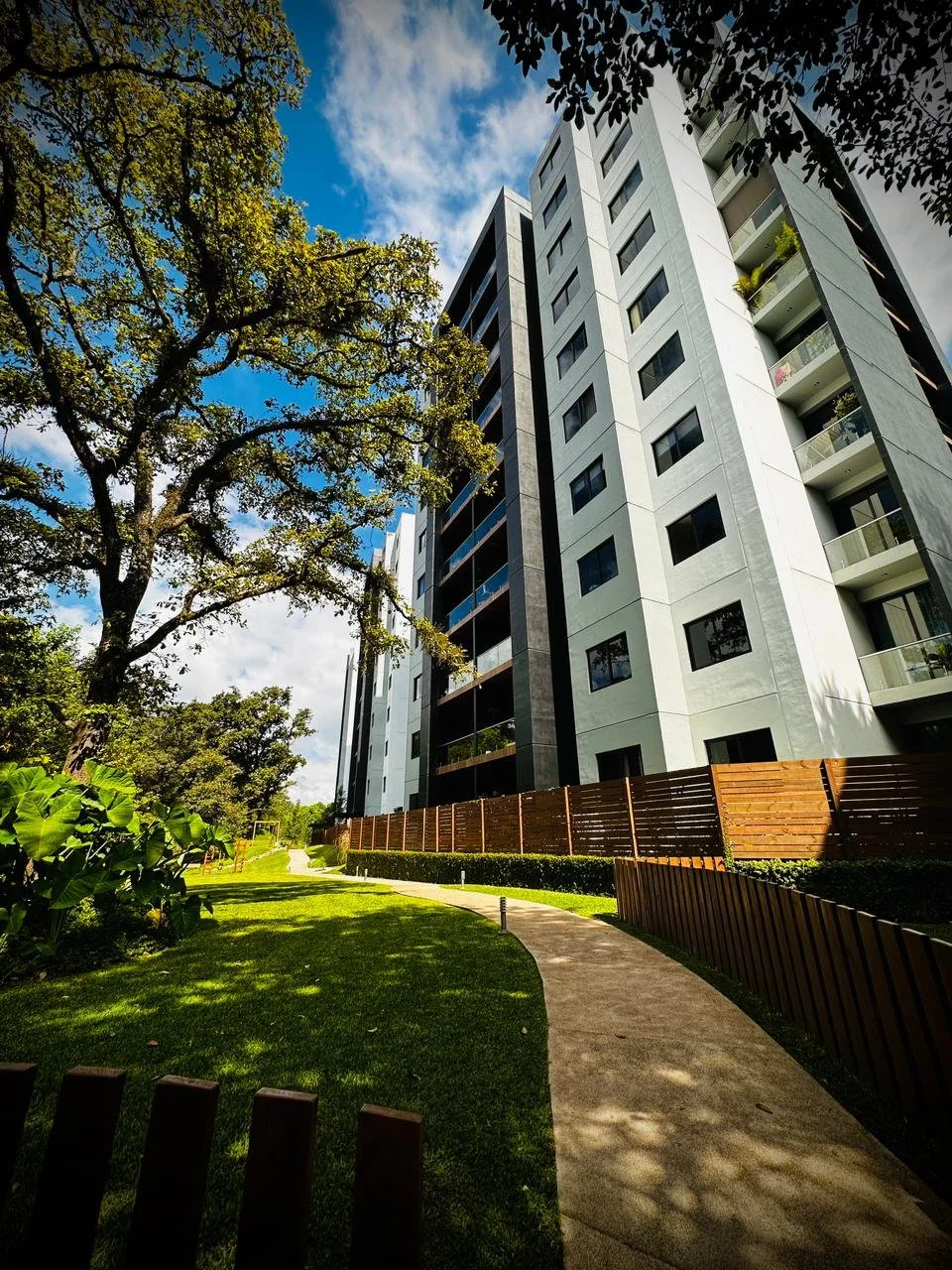 El apartamento se encuentra ubicado en la torre sur del complejo lo que le da un privilegio único en cuanto a su amplia iluminación y vistas hacia un lindo bosque lleno de vida silvestre, logrando el equilibrio perfecto entre la excelente ubicación de la zona 10 capitalina y el estar en un espacio aislado del ruido y el caos de la ciudad.