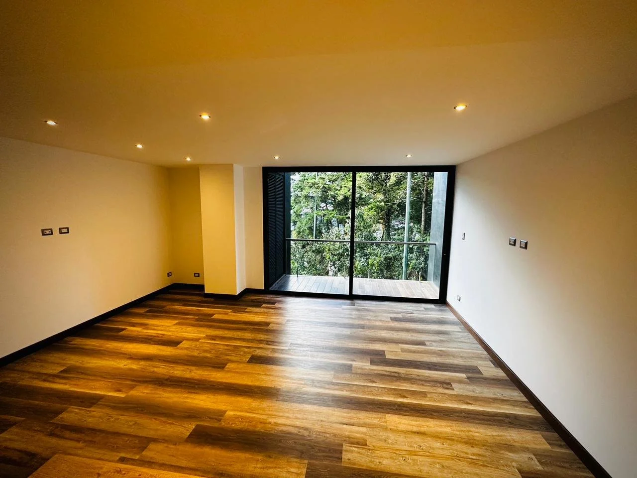 Terraza amplia con vista al bosque, balcón con linda vista en la habitación principal.