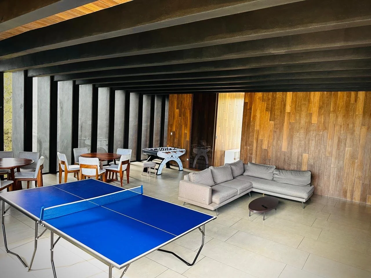 10) Lounge Cocineta, 2 televisiones, mesa de futio, área de entretenimiento, baño.