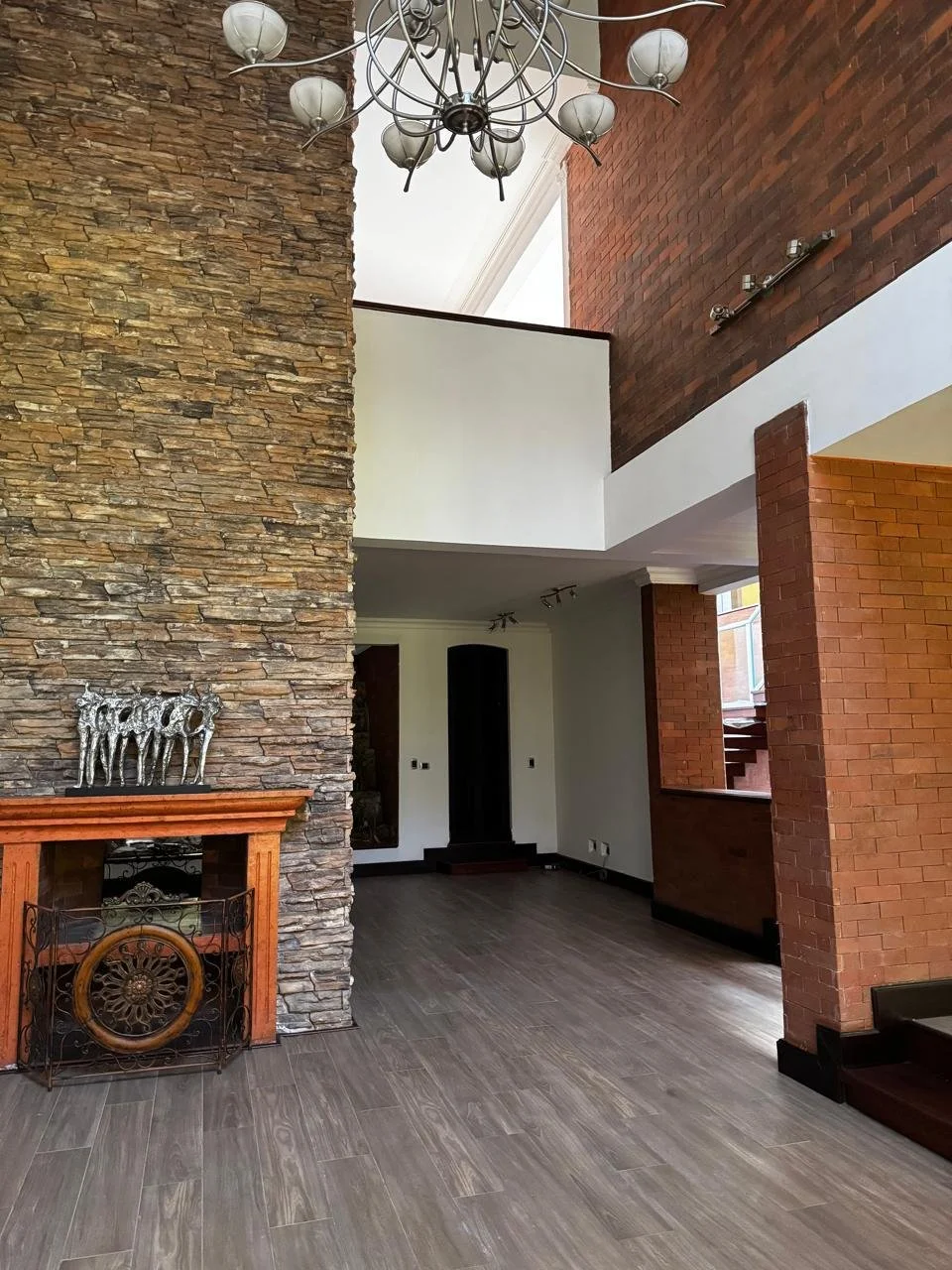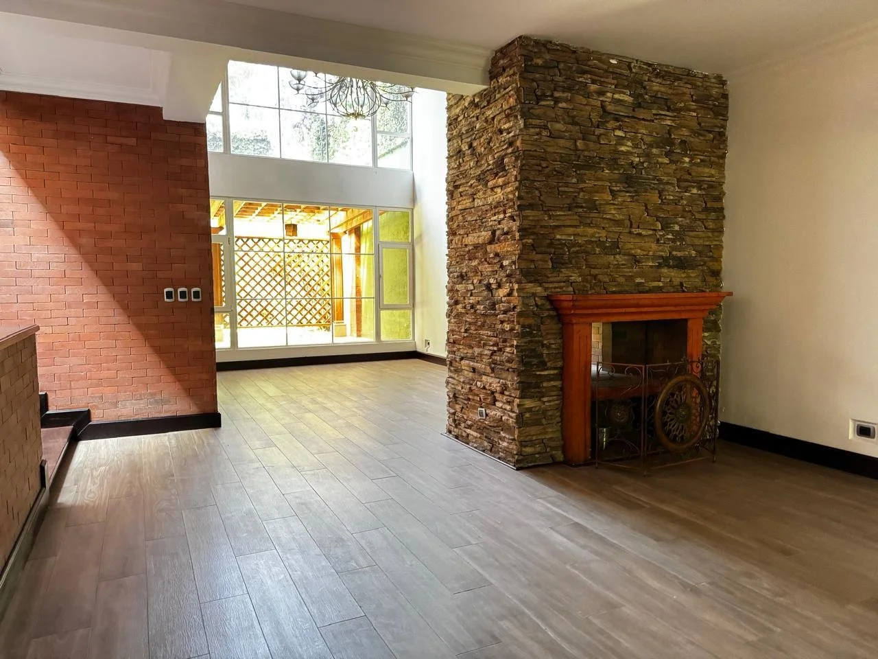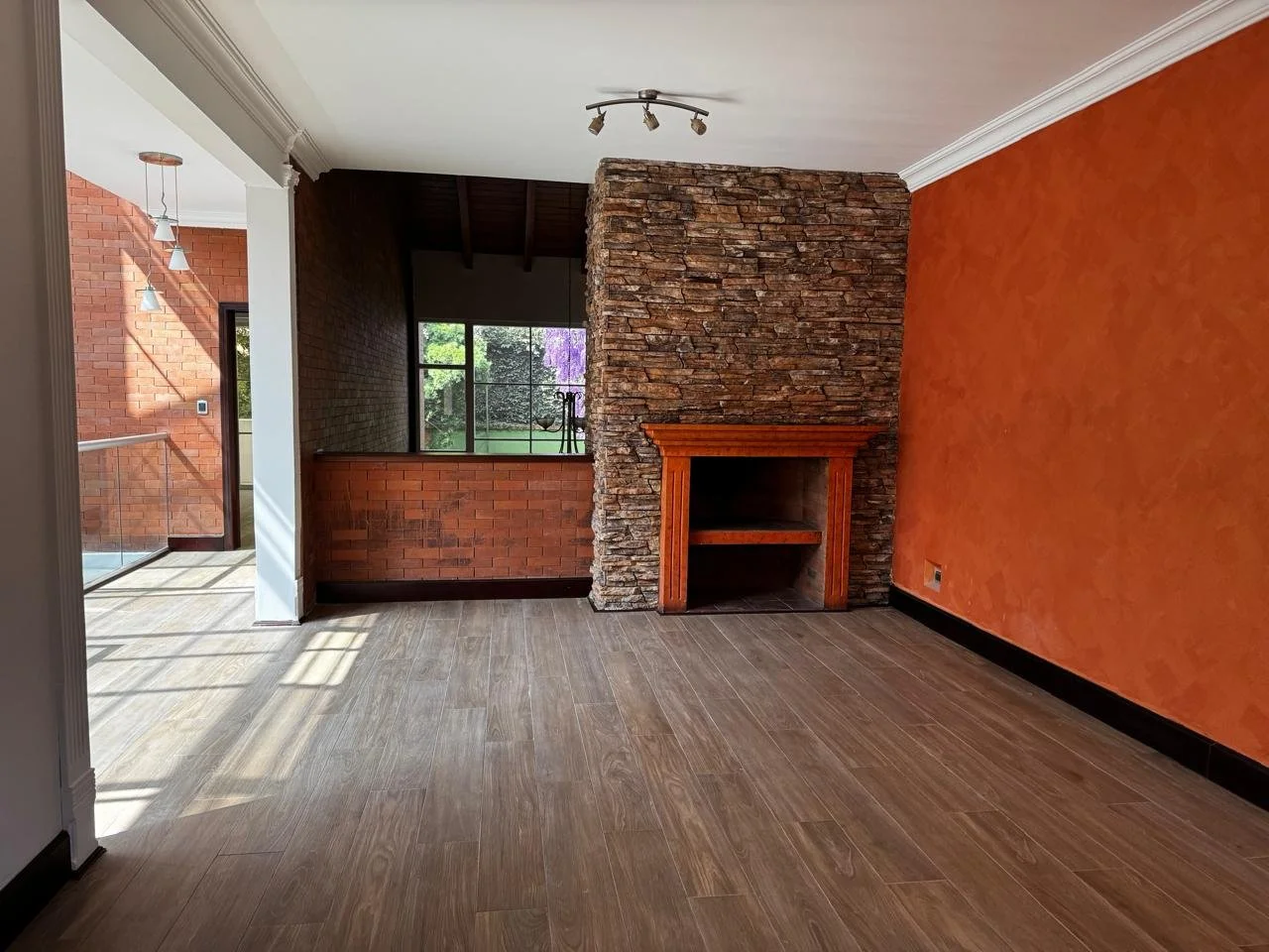 Sala con dos ambientes y chimenea